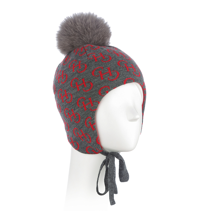 Шапка для мальчиков темно-серая и белая с мехом песцем