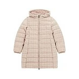 Бежевое пальто для девочек Guess с капюшоном и принтом