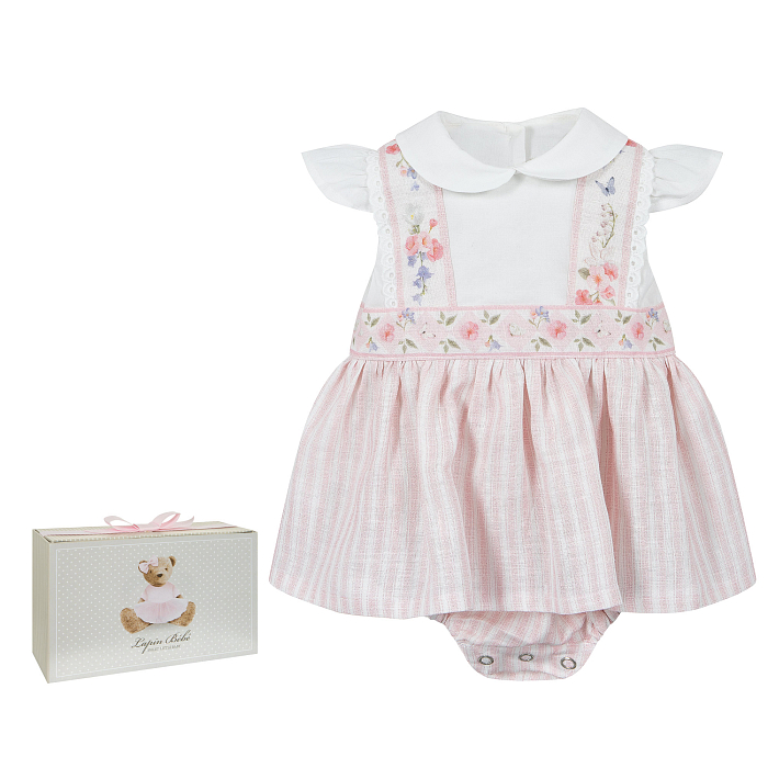 Песочник Lapin House – это идеальный выбор для маленьких принцесс! Изготовленный из 73% льна, 26% хлопка и 1% эластана, он украшен очаровательным цветочным принтом на белом фоне. Нежный молочный цвет и белый воротничок создают нежное и уютное настроение. На фотографиях видна аккуратная белая окантовка по краю и мягкая текстура ткани. Качество от бренда из Греции и внимание к деталям делают эту модель отличным выбором для вашего малышки!