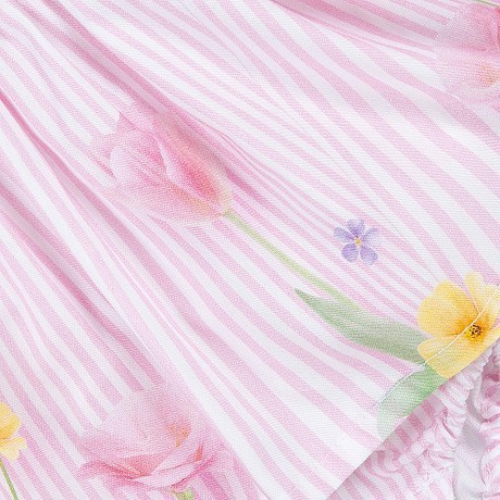 Песочник Lapin House – это идеальный выбор для маленьких девочек! Изготовленный из 97% хлопка и 3% эластана, он оформлен очаровательным розовым принтом с цветами и полосками. Нежная розовая основа с яркими цветочными мотивами создает нежное и веселое настроение. На фотографиях видна аккуратная розовая окантовка по краю и мягкая текстура ткани. Качество от бренда из Греции и внимание к деталям делают этот песочник отличным выбором для вашего малыша!