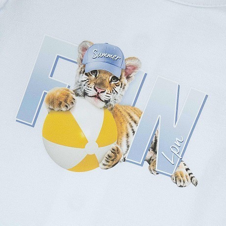 Белый песочник для мальчиков с принтом тигра и надписью Fun