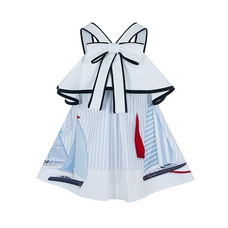 Текстильное платье для девочек Lapin House с принтом яхт и полосками