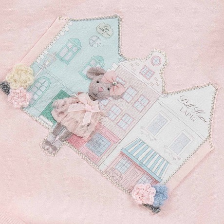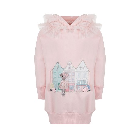 Платье для девочек Lapin House с принтом домиков и медведя бледно-розовое для 4 лет
