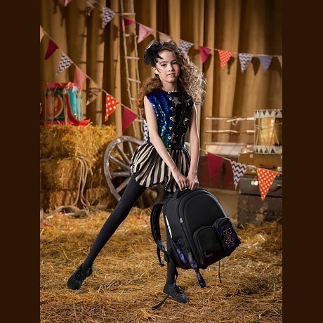 Черный ранец+мешок для обуви+сумка-пенал для девочек