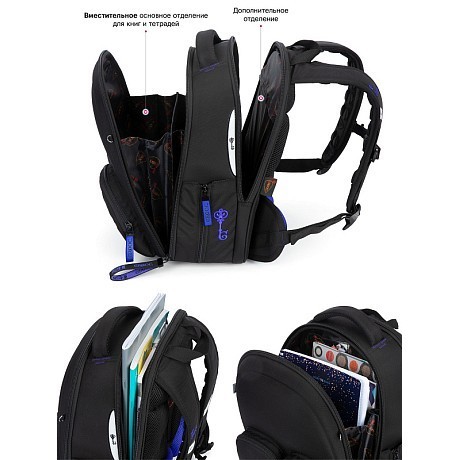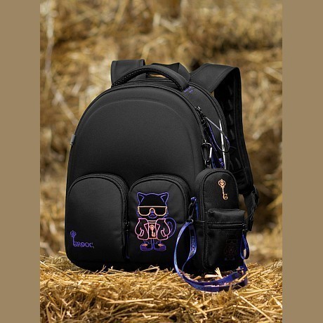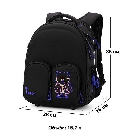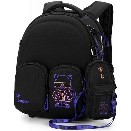 Ранец+мешок для обуви+сумка-пенал GROOC – идеальный выбор для девочек! Изготовлен из 100% полиэстера, он украшен очаровательной вышивкой котика в очках. Стильный черный цвет подчеркивает элегантность и модный образ. На фотографиях видна аккуратная вышивка котика в очках, удобная ручка и мягкая текстура ткани. Качество от бренда GROOC и внимание к деталям делают этот ранец отличным выбором для вашего ребенка!