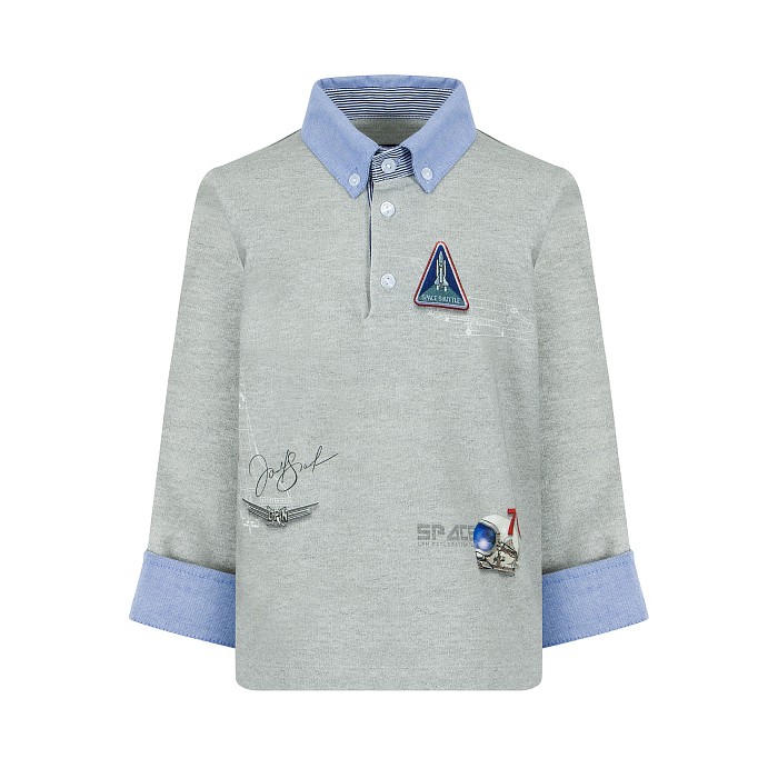Серая рубашка-поло Lapin House для мальчиков с принтом космических ракет и шариков