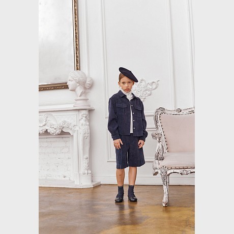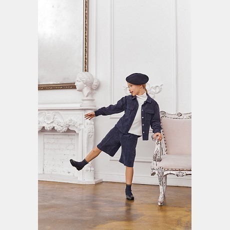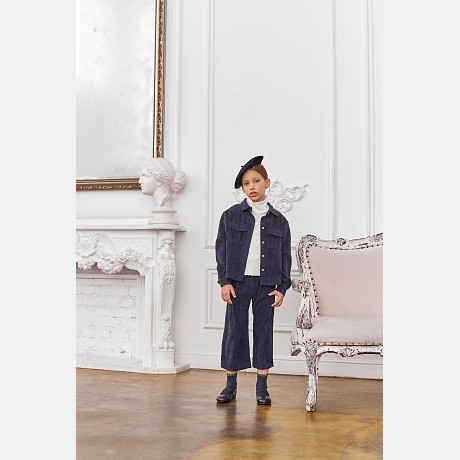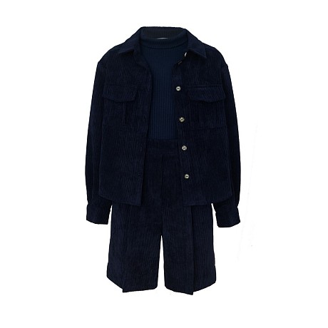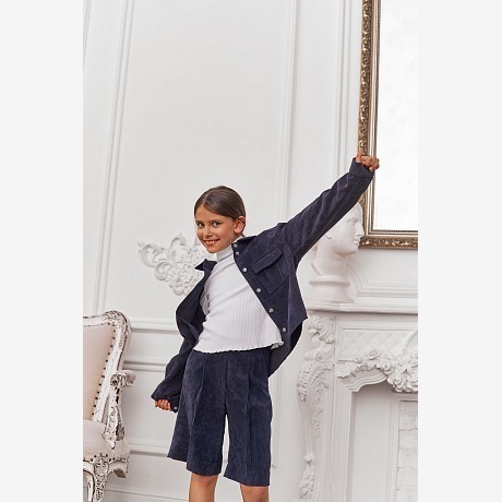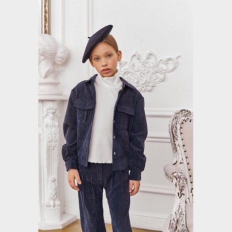 Темно-синяя вельветовая рубашка для девочек Piccino Bellino