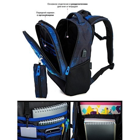 Рюкзак+пенал SkyName – это идеальный выбор для мальчиков! Изготовлен из прочного 100% полиэстера, он украшен ярким принтом планеты и звезд. Черная основа с голубыми акцентами создает стильный и современный образ. Качество от бренда SkyName делает этот рюкзак отличным выбором для вашего ребенка! Быстрая доставка СДЭК по всей России.
