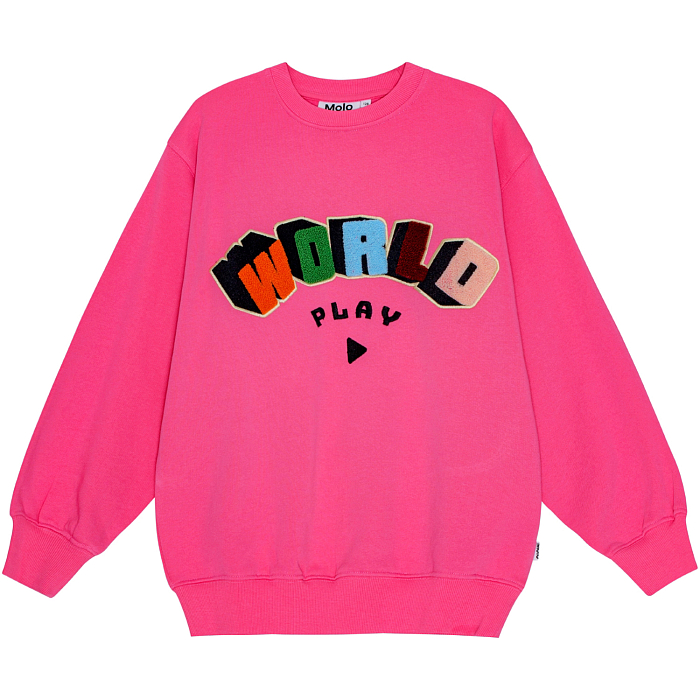 Розовый джемпер для девочек Molo – это идеальный выбор для вашего ребенка! Изготовлен из 100% натурального хлопка, он украшен ярким принтом World Play с разноцветными буквами и черными контурами. Джемпер с круглым вырезом горловины и длинными рукавами идеально подойдет для девочек от 7 до 12 лет. На фотографиях видна аккуратная черная окантовка по краю и мягкая текстура ткани. Качество от датского бренда и внимание к деталям делают этот джемпер отличным выбором для вашего ребенка!
