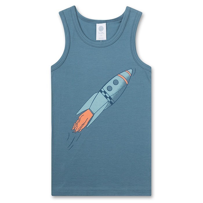 Серо-голубая майка Sanetta с принтом ракеты для мальчиков