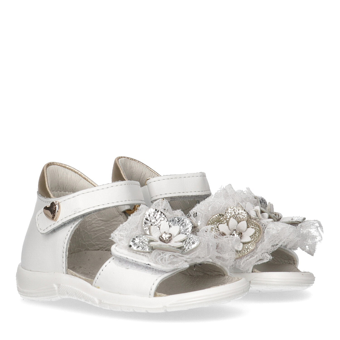 Белые сандалии для девочек с цветами и рюшами