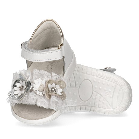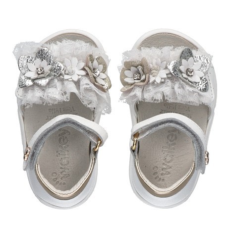 Белые сандалии для девочек с цветами и рюшами