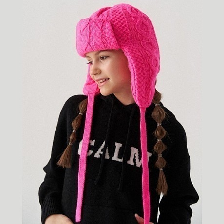 Фуксия шапка для девочек Chobi с ушками и лентами
