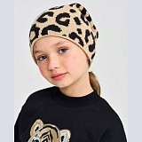 Бежевая, черная шапка Chobi с леопардовым принтом для девочек (54-56 см)