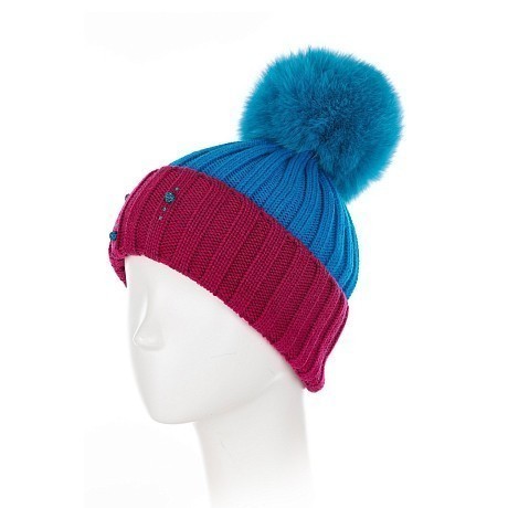 Бирюзовая шапка для девочек Joli Bebe с меховым помпоном