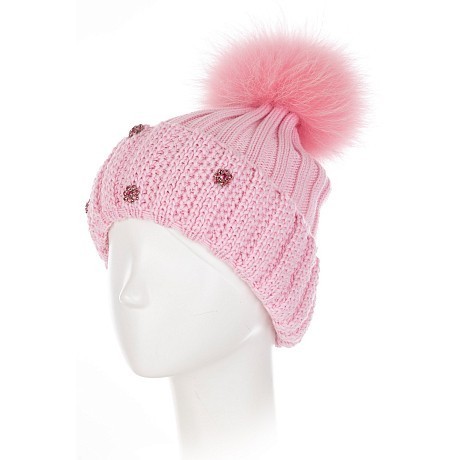 Розовая шапка для девочек Joli Bebe с меховым помпоном