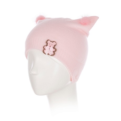 Шапка для девочек Joli Bebe бледно-розовая с мехом