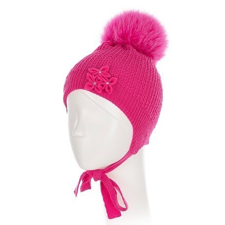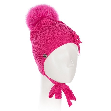 Шапка для девочек Joli Bebe с меховым помпоном и бантом