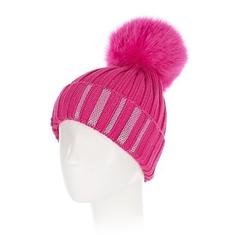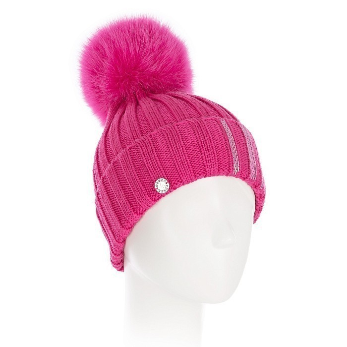 Шапка для девочек Joli Bebe с помпоном из лисьего меха фуксия