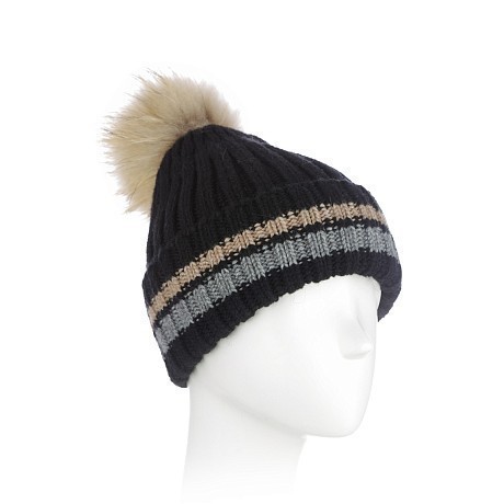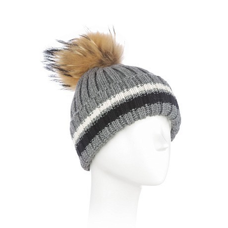 - 🎨 Дизайн: полоски в молочном, сером и черном цветах, меховой помпон