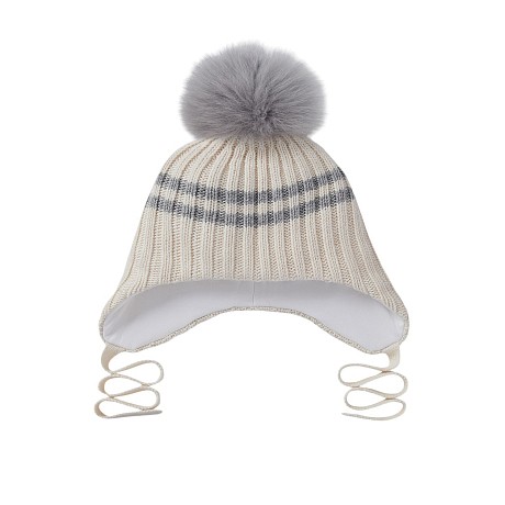 Шапка для мальчиков Chobi серая с мехом песца и молочная