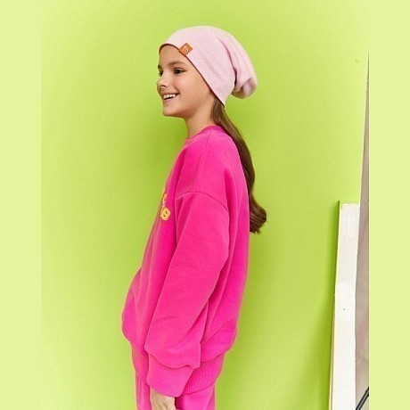 Шапка двусторонняя детская Chobi зеленая и бледно-розовая