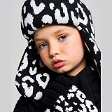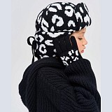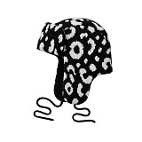 Бежевая, черная шапка-ушанка Chobi с леопардовым принтом для девочек (53-57 см) - WH26008/М/25-02 - купить в LapinLand.ru