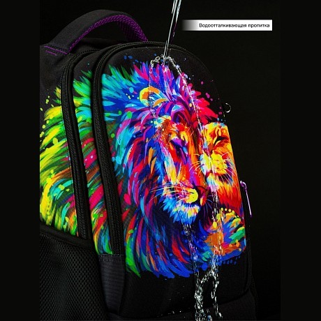 - 🎨 Дизайн: яркий принт льва с разноцветными волосами, удобная посадка