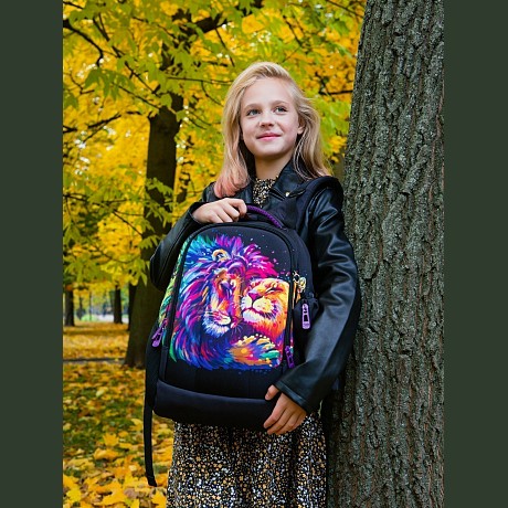 Рюкзак+пенал для девочки SkyName с принтом льва