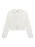 Кремовая толстовка от американского бренда Guess – это идеальное сочетание уличного стиля и нежности. Укороченный крой (crop) делает образ современным, а мягкий 100% хлопок дарит приятные тактильные ощущения. На груди расположен изящный логотип в форме сердца, который добавляет женственности спортивному луку. Удобная молния и капюшон делают эту вещь незаменимой в гардеробе активной девочки!