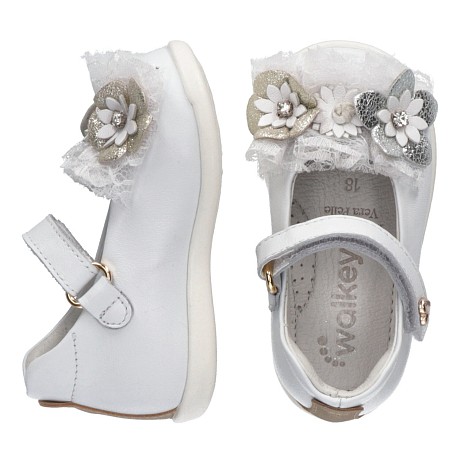 Белые туфли для девочек Walkey с цветочками и кружевом