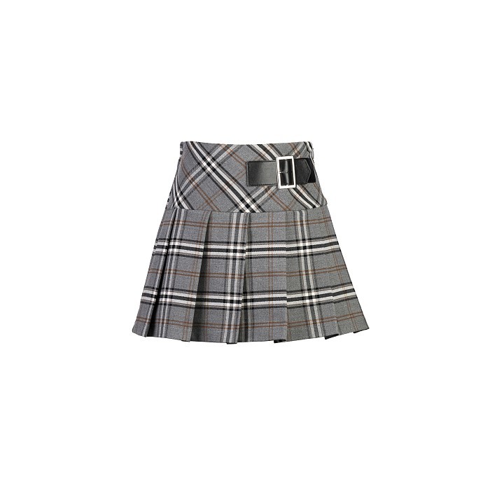 - 🎨 Дизайн: серый цвет, клетчатый принт, ремень с пряжкой