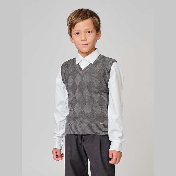 Темно-серый жилет от Andersen – это идеальный вариант для мальчиков! Изготовленный из качественного хлопка и полиакрила, он обеспечивает комфортную посадку. Стильный аргументический узор и элегантная форма делают этот жилет отличным дополнением к школьному или повседневному образу. Подходит для детей от 8 до 11 лет, найдется размер для вашего ребенка! Быстрая доставка СДЭК по всей России.