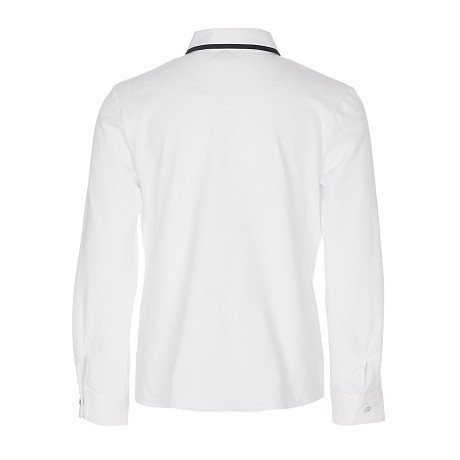 Белая блузка для девочек с воротником и бантом – это идеальный выбор для стильных и комфортных образов! Изготовлена из 97% хлопка и 3% эластана, она обеспечивает мягкость и комфорт. Воротник украшен эластичной резинкой, которая обеспечивает удобную посадку и не сдавливает шею. Бантик на воротнике придает блузке нежный и романтичный вид. На фотографиях видна аккуратная белая основа с черным бантом и эластичной резинкой на воротнике. Качество ткани и внимание к деталям делают эту блузку отличным выбором для вашего ребенка!