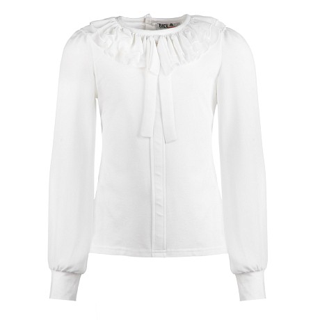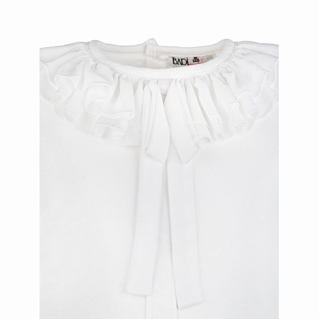- 🎨 Дизайн: молочный цвет, рюши на воротнике и рукавах, эластичные манжеты