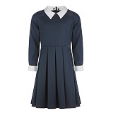 Темно-синее платье для девочек Badi Junior с воротником и рукавами до локтя
