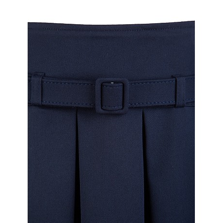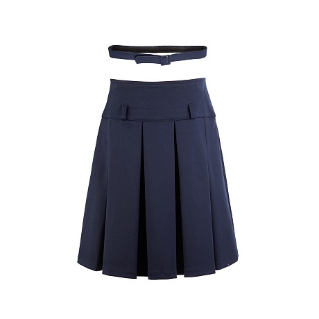 - 🎨 Дизайн: темно-синий цвет, пояс с пряжкой, плиссировка