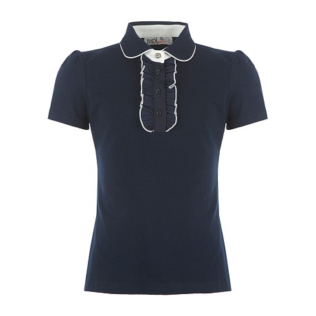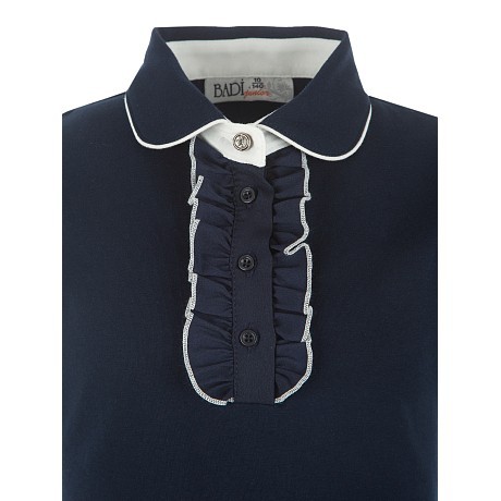 - 🎨 Дизайн: рюши на воротнике и рукавах, белая окантовка, темно-синий цвет