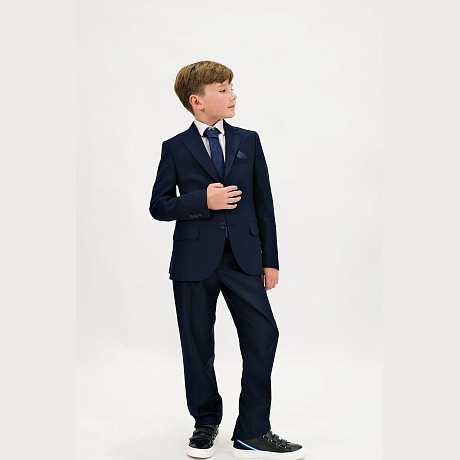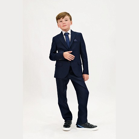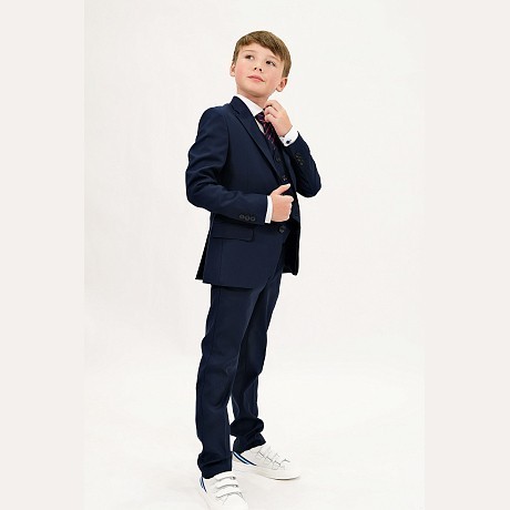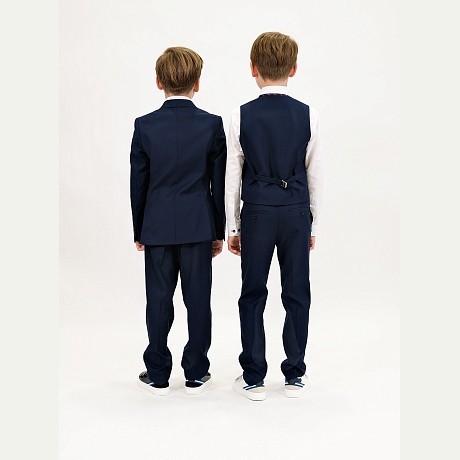 Темно-синий костюм (пиджак+жилет+брюки) для мальчиков 7-12 лет