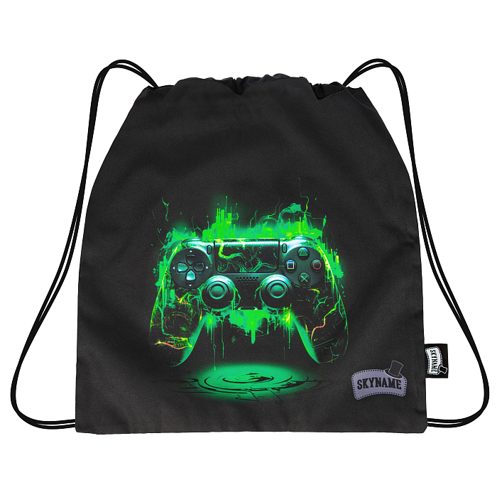 Мешок для обуви SKYNAME – это идеальный выбор для мальчиков! Изготовлен из 100% полиэстера, он украшен ярким принтом игровой консоли с зелеными брызгами. Нежный черный фон с яркими зелеными брызгами создает игривое и современное настроение. На фотографии видна аккуратная черная окантовка по краю и мягкая текстура ткани. Качество от бренда SKYNAME и внимание к деталям делают этот мешок отличным выбором для вашего мальчика!