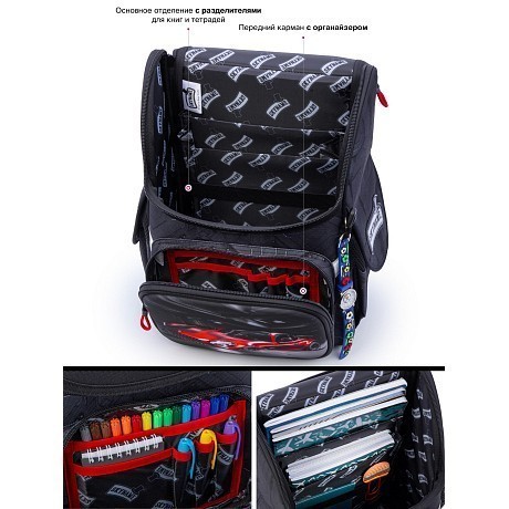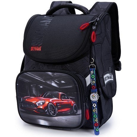 Ранец+часы SkyName – это идеальный выбор для юных автолюбителей! Изготовленный из 100% полиэстера, он украшен черным принтом спортивного автомобиля с красными деталями. Нежная черная основа с яркими красными акцентами создает стильный и современный образ. На фотографиях видна аккуратная черная контрастная окантовка по краю и мягкая текстура ткани. Качество от бренда и внимание к деталям делают эту сумку отличным выбором для вашего ребенка!