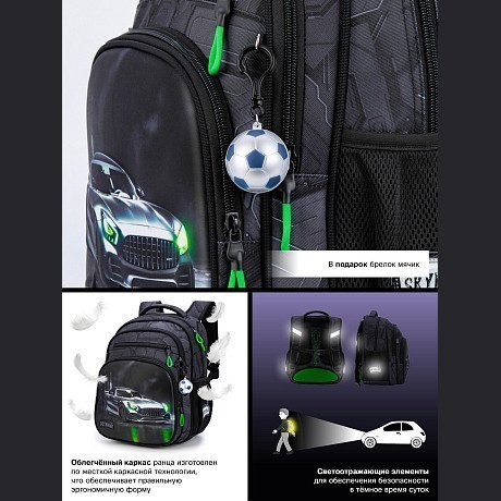 Рюкзак+брелок мячик SkyName – это идеальный выбор для юных модников! Изготовлен из 100% полиэстера, он оформлен стильным изображением спортивного автомобиля и надписью SkyName. Черный цвет подчеркивает элегантность и универсальность рюкзака. Благодаря удобной форме и прочной конструкции, он идеально подойдет для школы или прогулок. Брелок мячик добавляет яркости и функциональности, делая рюкзак еще более привлекательным. На фотографиях видна удобная ручка, прочные молнии и брелок мячик, который идеально подходит для любителей футбола.