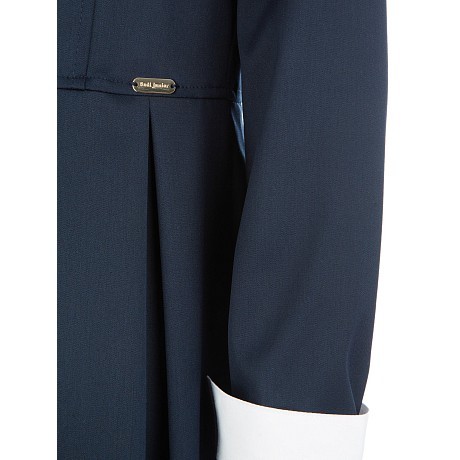 - 🎨 Дизайн: темно-синий цвет, белый воротник и рукава, удобная застежка на молнии
