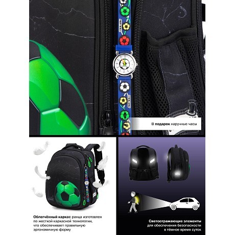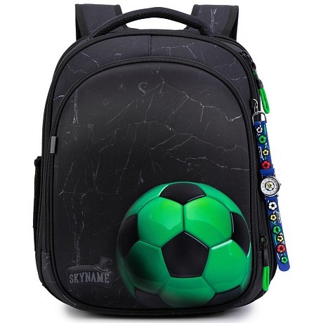Ранец+часы SkyName – это идеальный выбор для юных школьников! Изготовленный из прочного полиэстера, он украшен ярким футбольным мячом и зелеными молниями. Черная основа с яркими акцентами создает модный и удобный образ. Бренд SkyName, известный своими качественными продуктами из США, делает этот ранец отличным выбором для вашего ребенка! Быстрая доставка СДЭК по всей России.