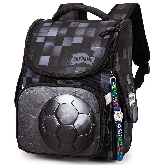 Ранец SkyName – это идеальный выбор для мальчиков! Изготовленный из прочного материала 100% этиленвинилацетат/полиэстер, он украшен футбольным мячом и часами. Черный цвет подчеркивает спортивный стиль, а дополнительные аксессуары делают этот ранец не только удобным, но и модным. Быстрая доставка СДЭК по всей России.