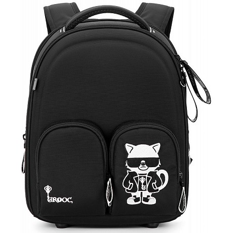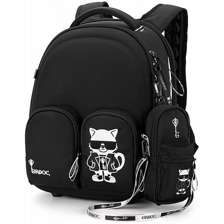 Ранец+мешок для обуви+сумка-пенал GROOC – это идеальный выбор для девочек! Изготовленный из 100% полиэстера, он украшен милым принтом с изображением котика в очках. Черный цвет подходит к любому наряду, а стильный дизайн добавляет образу неповторимости. На фотографиях видна аккуратная отделка молнии, удобная ручка и вместительные карманы. Качество от бренда GROOC и внимание к деталям делают эту сумку отличным выбором для вашего ребенка!