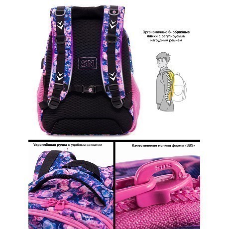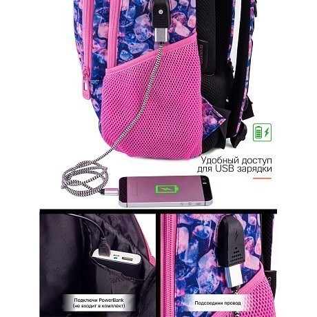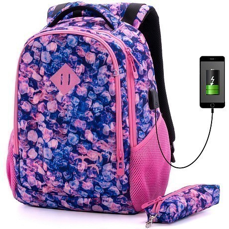 Рюкзак+пенал SkyName синего цвета – идеальный выбор для девочек! Изготовлен из 100% полиэстера, он оформлен стильным принтом из камней и оснащен удобным USB-портом для зарядки телефона. Рюкзак+пенал SkyName – это не только стильный аксессуар, но и полезная вещь для учебы и повседневной жизни. На фотографиях видны удобные ручки, карманы для хранения и стильный принт на ткани. Качество и функциональность делают этот рюкзак+пенал отличным выбором для девочек!
