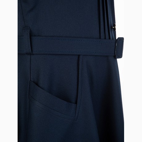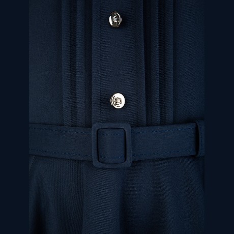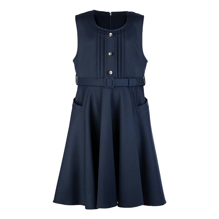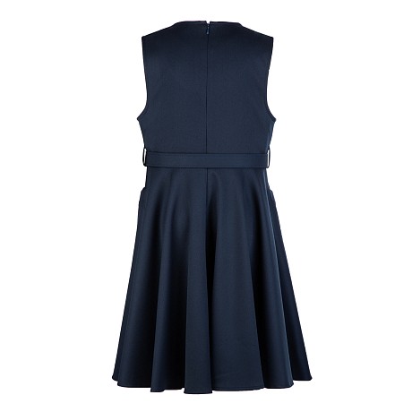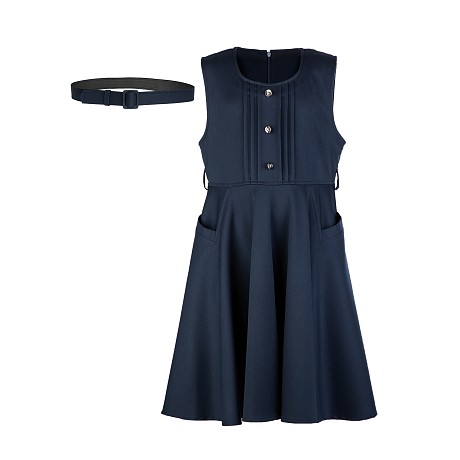 Темно-синий сарафан с поясом и карманами для девочек 8-12 лет