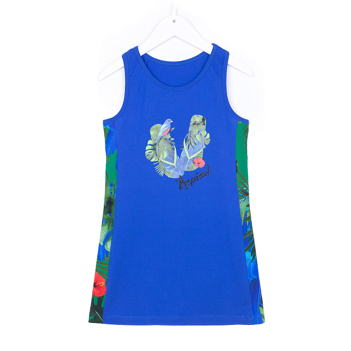 Платье тропический принт для девочек Lapin House – это идеальный выбор для вашего маленькой модницы! Изготовленное из 92% хлопка и 8% эластана, оно украшено ярким тропическим принтом с птицами и цветами на голубом фоне. Нежная ткань и удобная посадка создают комфорт и уют для вашего ребенка. На фотографии видна аккуратная отделка по краю и мягкая текстура ткани. Качество от бренда из Греции и внимание к деталям делают эту модель отличным выбором для вашего ребенка!
